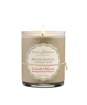 Vente de BOUGIE PARFUMEE GRENADE HIBISCUS 180G de Plantes & Parfums pas cher, en livraison en France et en magasin sur la Gironde à Libourne, proche de Bordeaux.